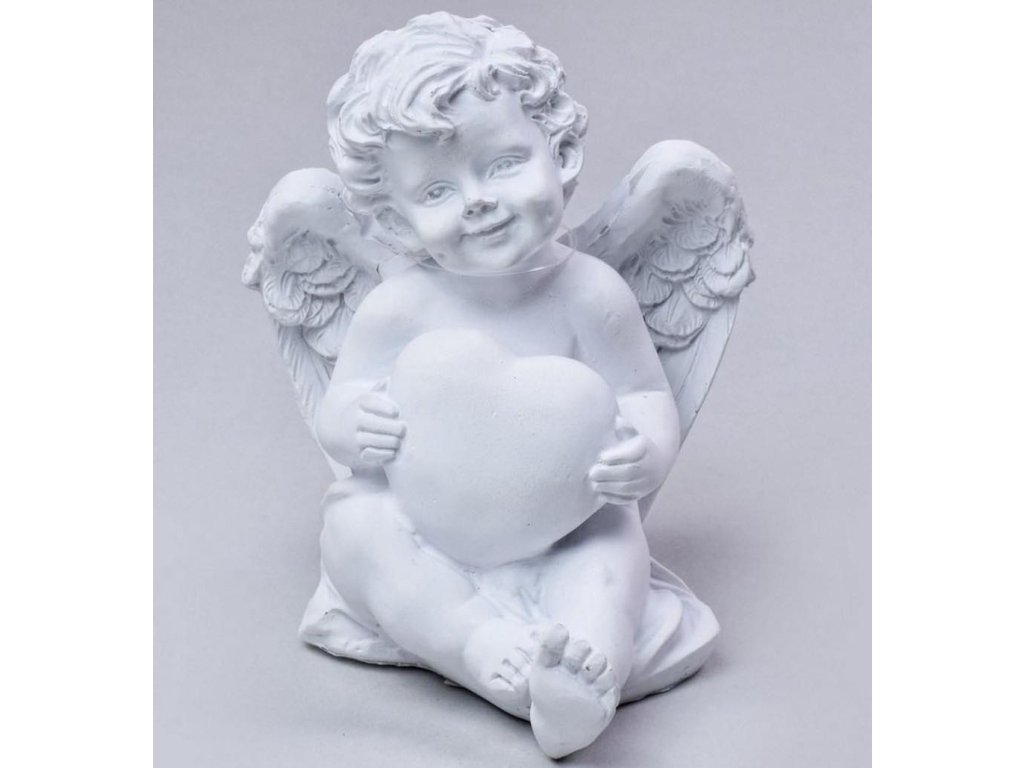Anděl se srdíčkem - polyresin - barva bílá,13x9x9,5 cm.
