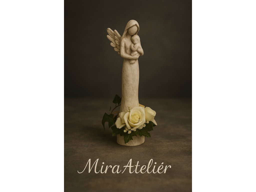 Nádherná andělka s miminkem - mrazuvzdorný odlitek z naší dílny.