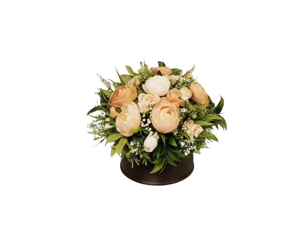 Materiál: mísa plast v barvě šedé s odnimatelným podstavcem, látkové květy pryskyřníku, ostatní zeleň