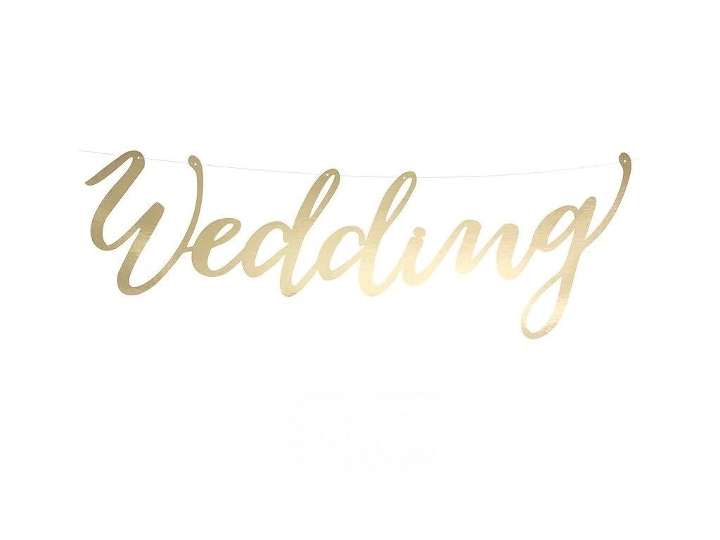 Stylový papírový banner s nápisem Wedding v lesklém zlatém provedení je ideální dekorací pro svatební výzdobu i fotografování. Dodá prostoru slavnostní atmosféru a krásně vynikne na svatebních snímcích.