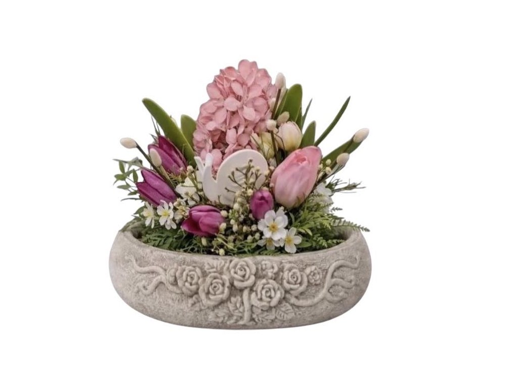 V nabídce různé barevné variace pro každou sezónu. Dekorace v této oválné nádobě patří k oblíbeným u našich zákazníků. Pokud jste si z nabídky nevybrali, napište nám a rádi vyhotovíme aranžmá dle vašeho přání.