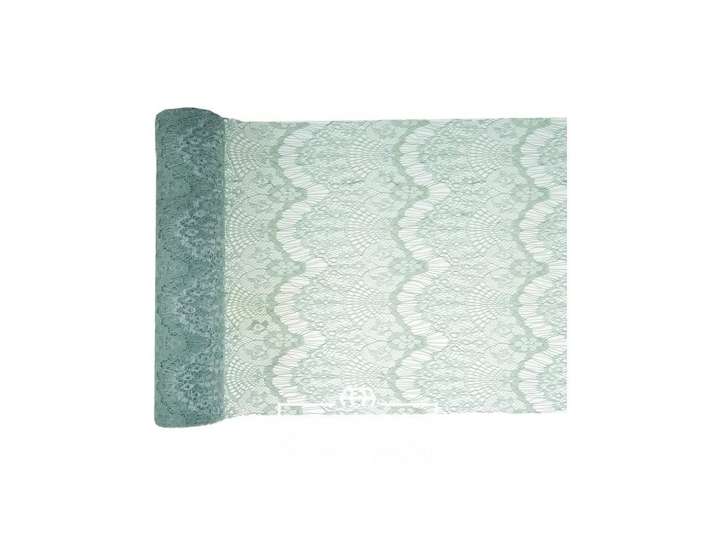Dodejte své výzdobě nádech romantiky s touto krásnou krajkovou šerpou v něžném starozeleném tónu. Je ideální volbou pro slavnostní stolování i dekorace, kde chcete vytvořit jemnou a vkusnou atmosféru.