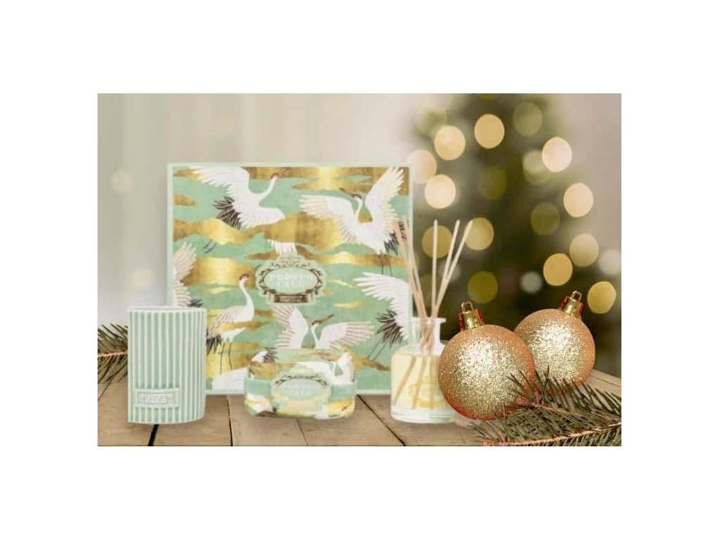 Luxusní a elegantní dárková sada obsahuje tuhé mýdlo, difuzér a vonnou svíčku.