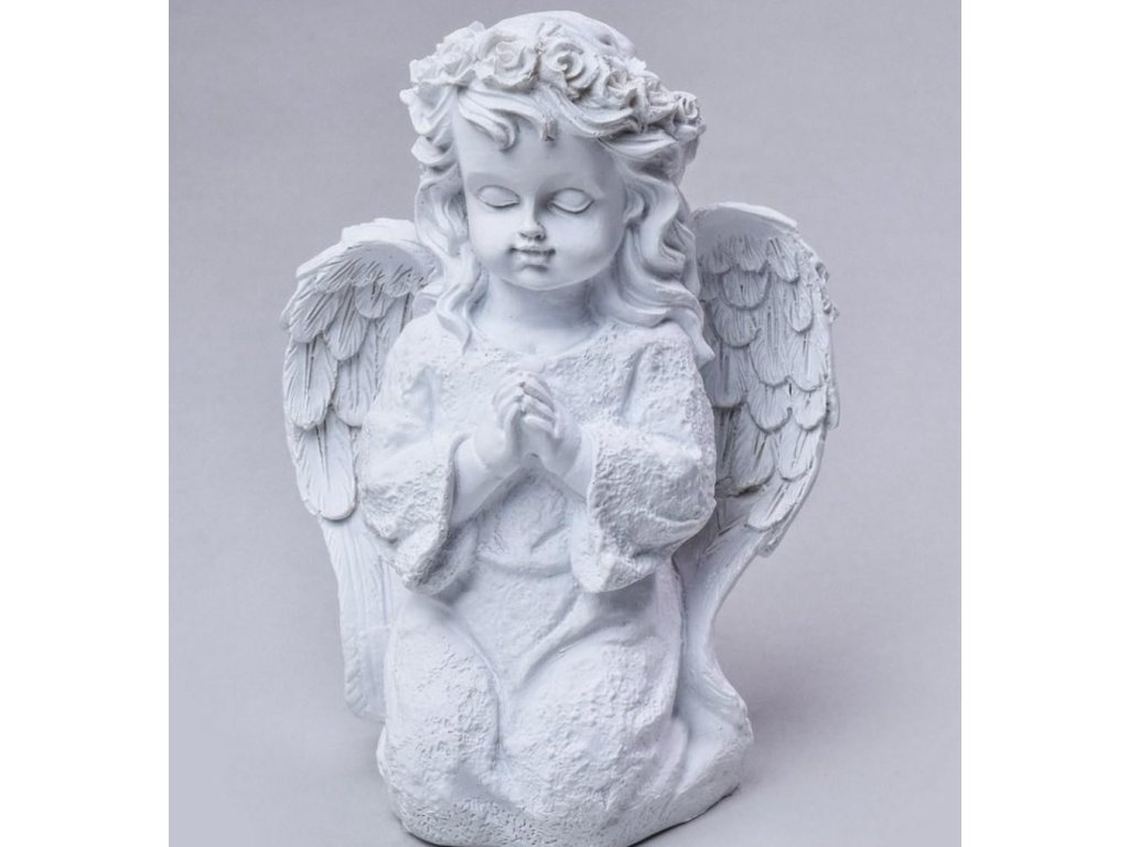 Dekorační andě klečící - polyresin, barva bílá,16x7,5x11,5cm