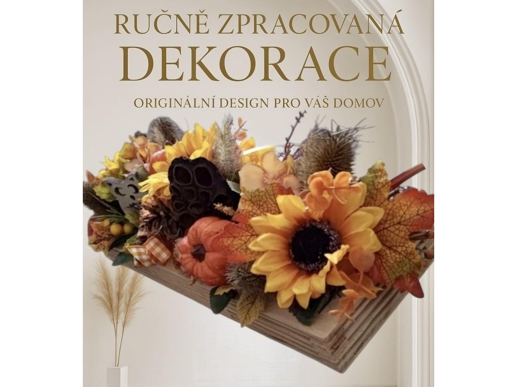 6. Slunečnice látkové a podzimní doplňky - nádoba dřevěná z naší dílny (vrstvený velice dekorativní tác)