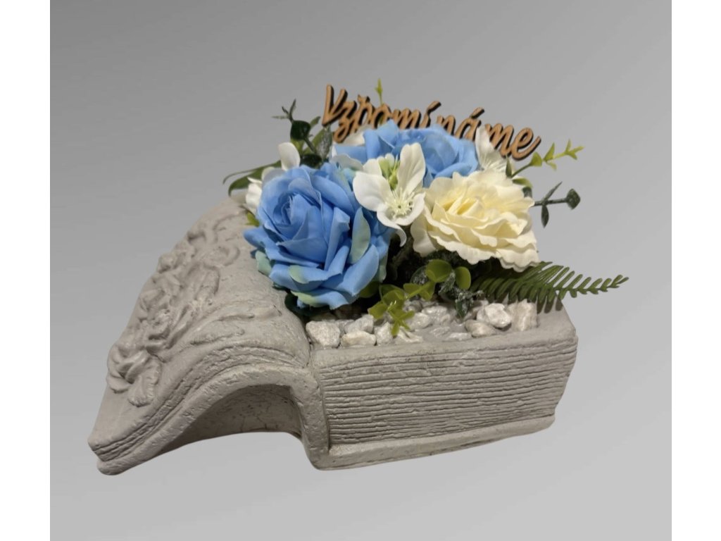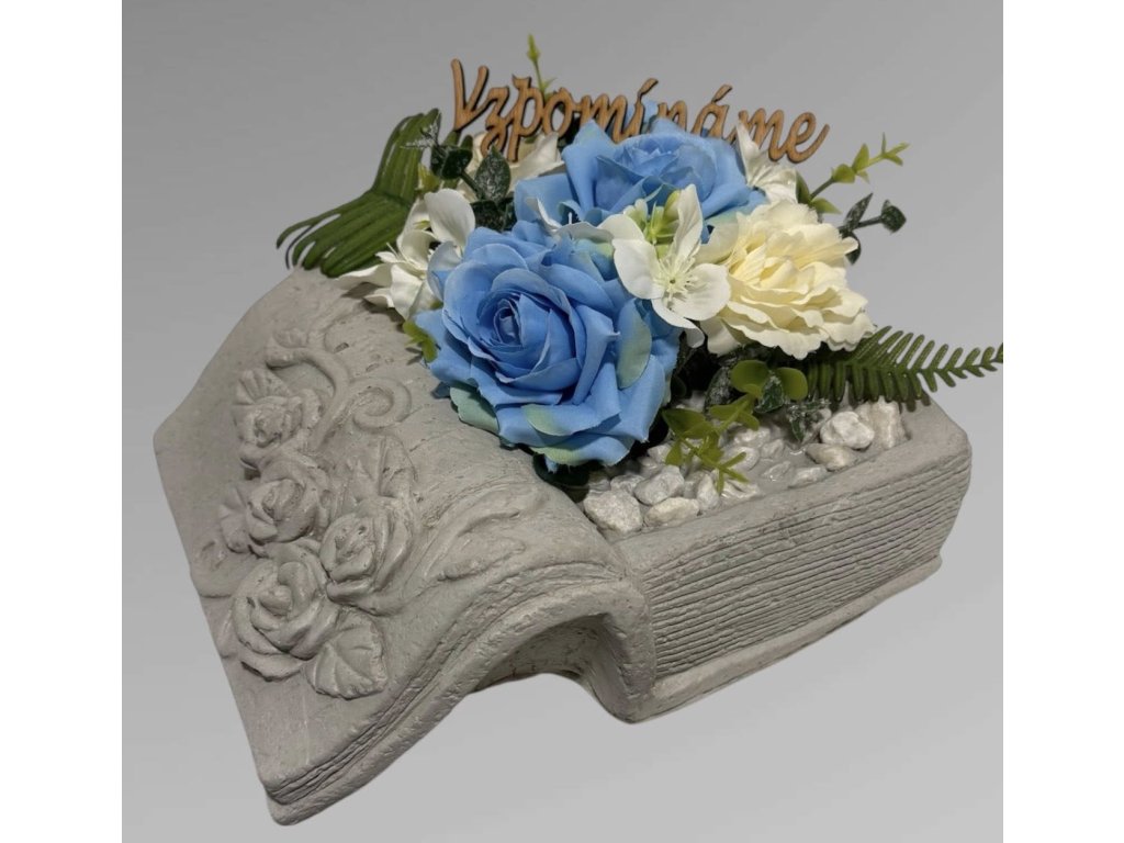 Materiál kniha: nádoba ve tvaru knihy s reliéfem z mrazuvzdorné cementové směsi z naší dílny.
