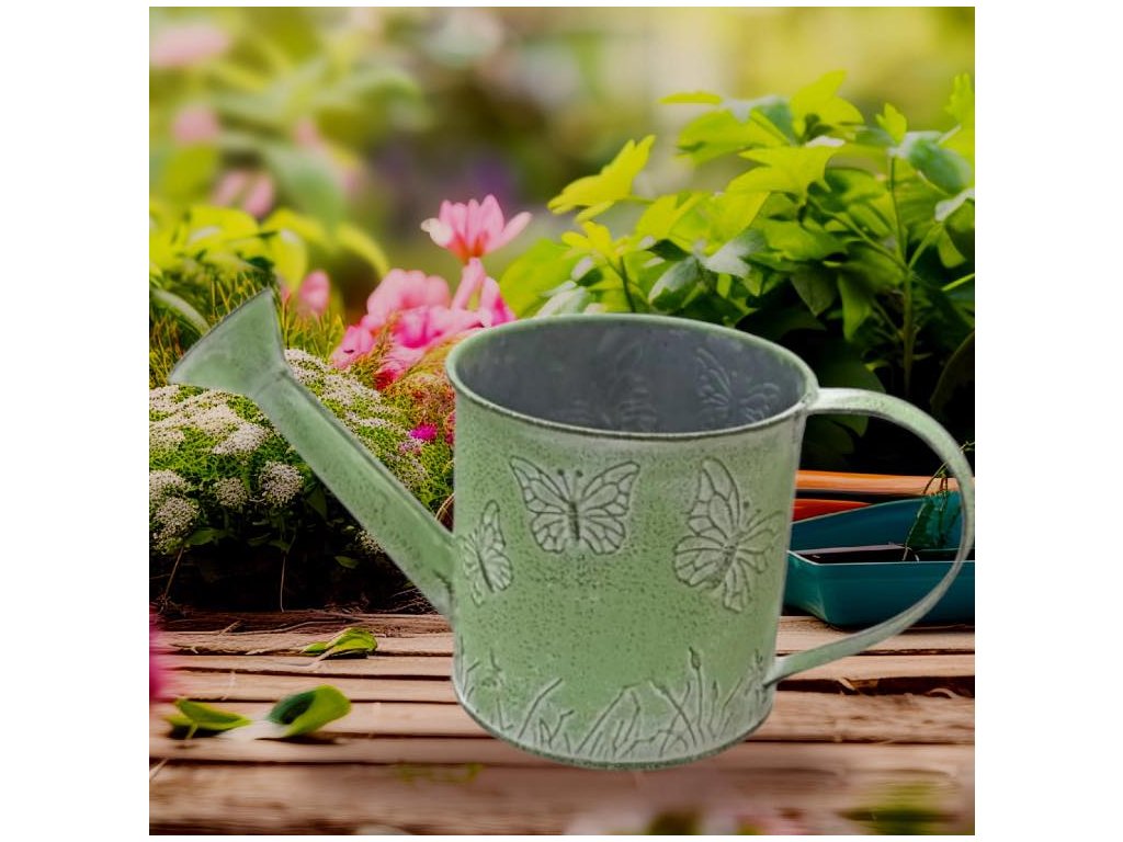 Konev kovová - barva zelená s motýlky,12x26x11,2 cm.