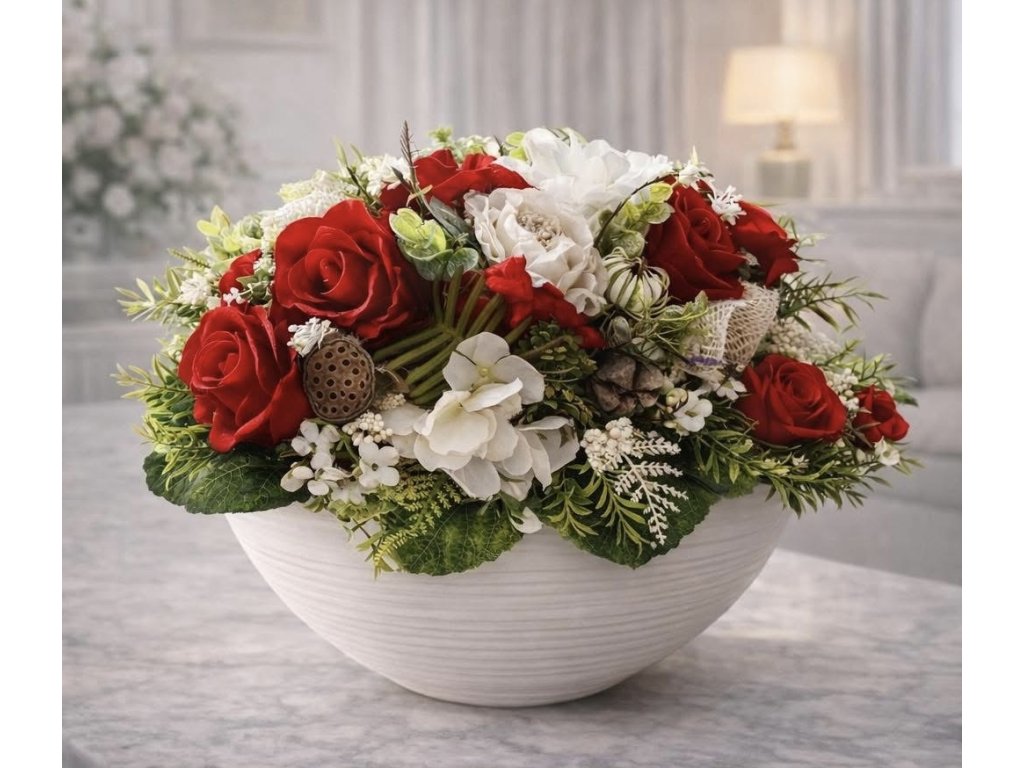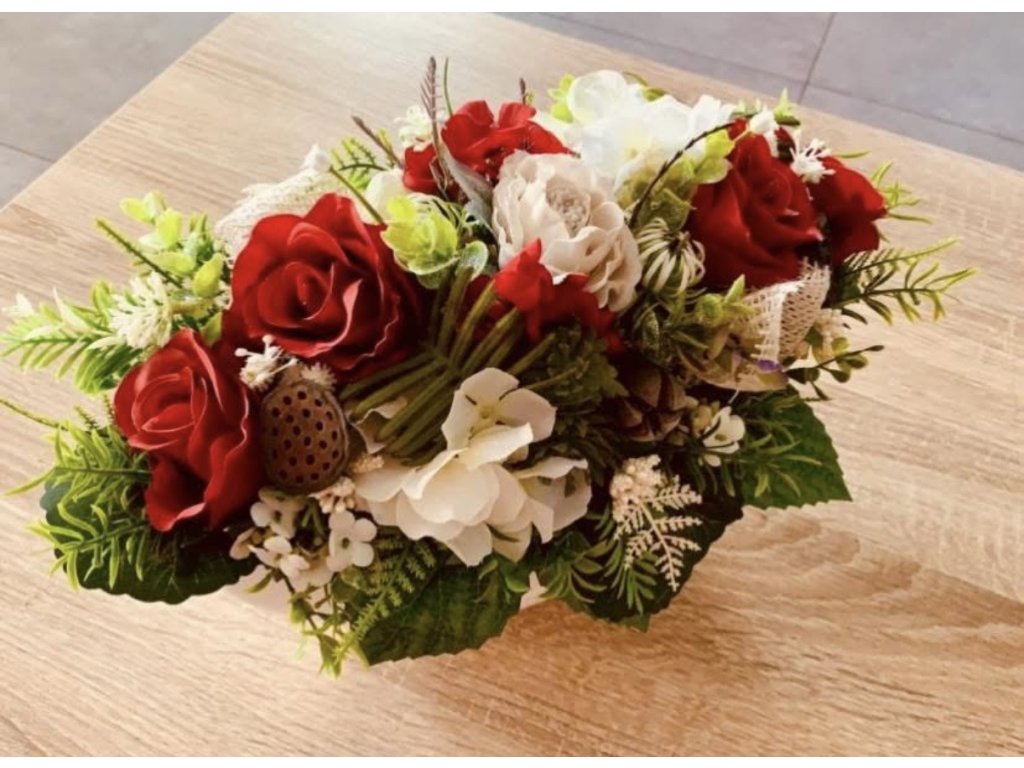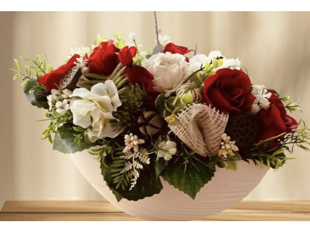 Květinová dekorace celoroční v keramickém obalu,v.28cm