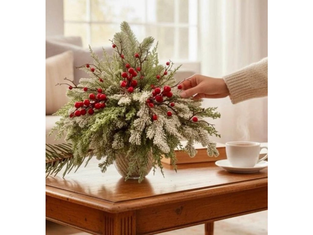 Na obrázku zimní kytice z umělých kvalitních materiálů vytvořena na přání naší věrné zákaznice.