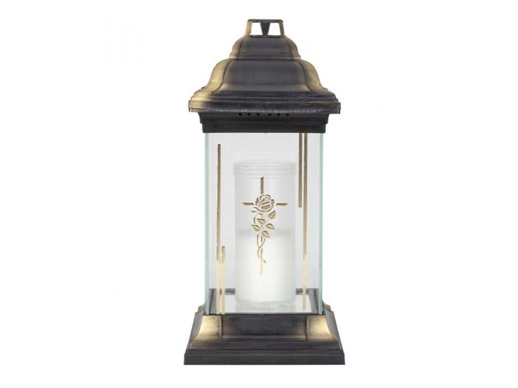 Lampa - lucerna - hřbitovní - KŘÍŽ RŮŽE - skleněná - svíčka 115g,v.31cm