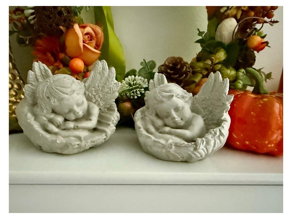 Nádherný anděl spící s křídly - ruční práce z mrazuvzdorné cementové směsi.