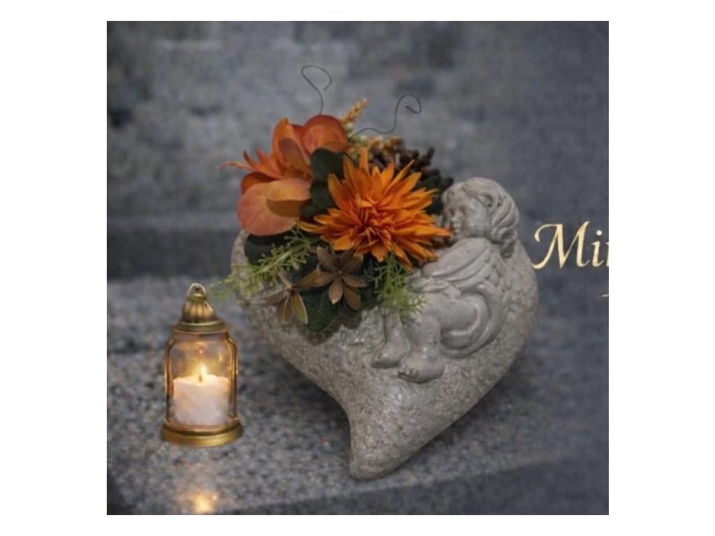Květinové elegantní trvanlivé aranžmá z látkových květů v teplých uklidňujících barvách a umělých doplňků pro venkovní využití a také na hrob, pro důstojnou vzpomínku na své blízké.