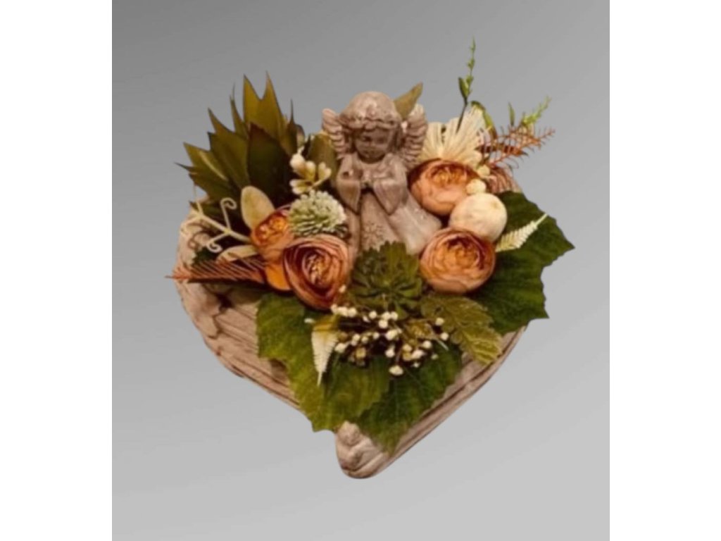 Smuteční srdce s křídly - anděl - sukulent,pr.20cm