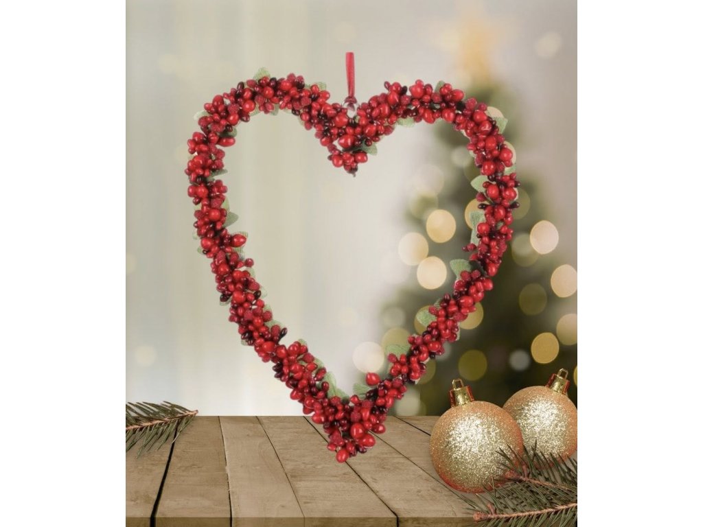 Nádherný trvanlivý věnec ve tvaru srdce s bobulemi na pověšení na dveře nebo zeď.
