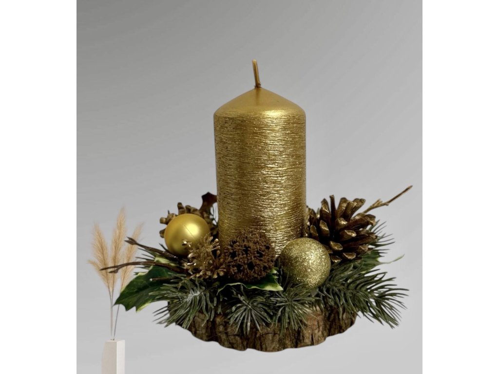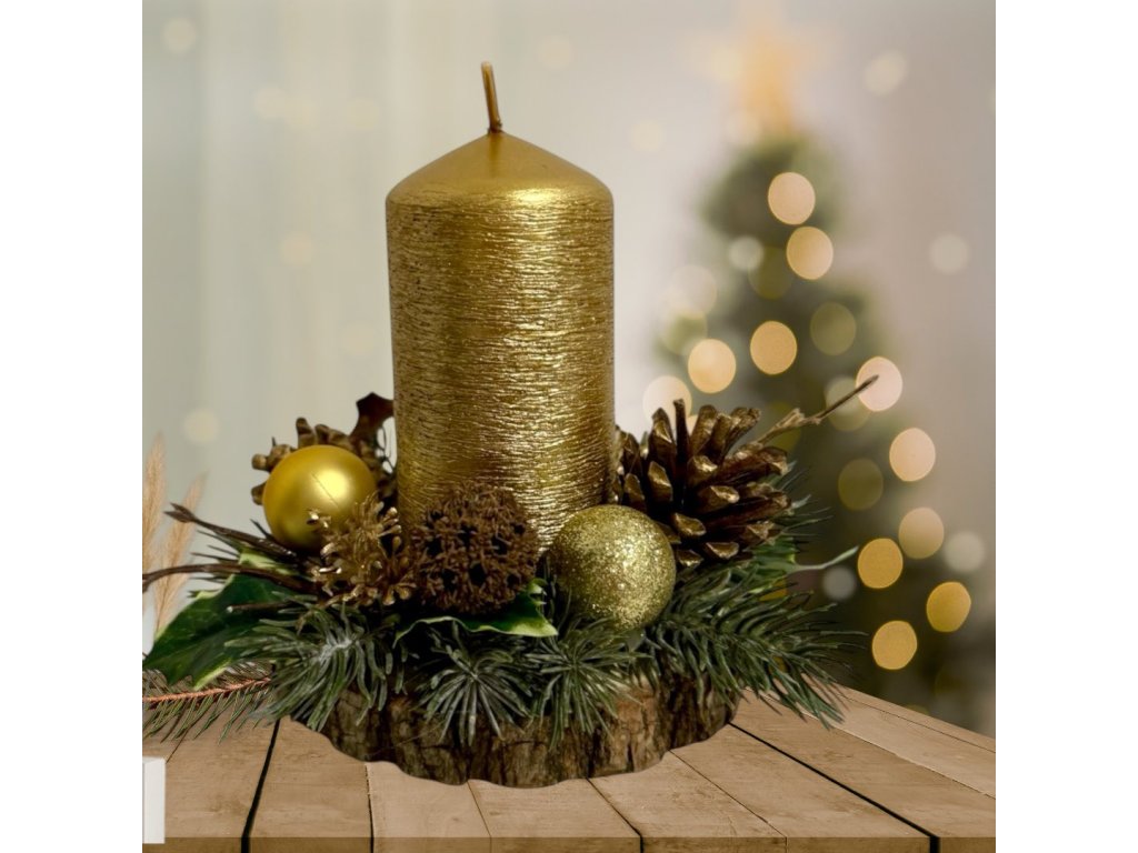 Svícen - vánoční - 1 svíčka metalická zlatá,v.13x13cm