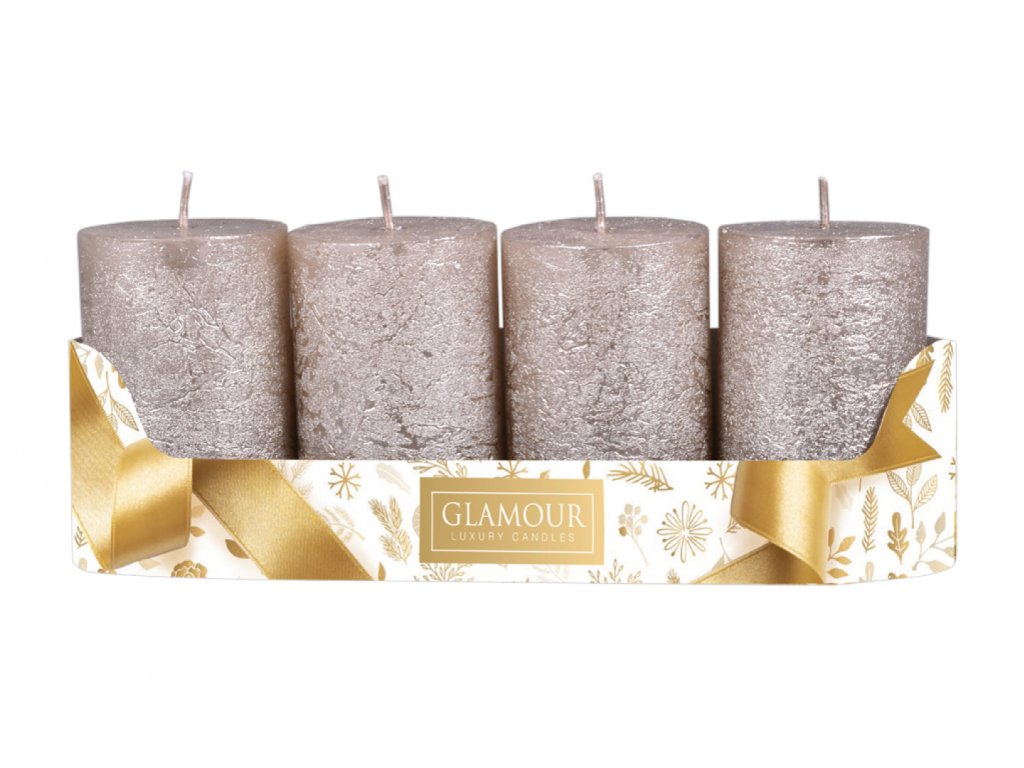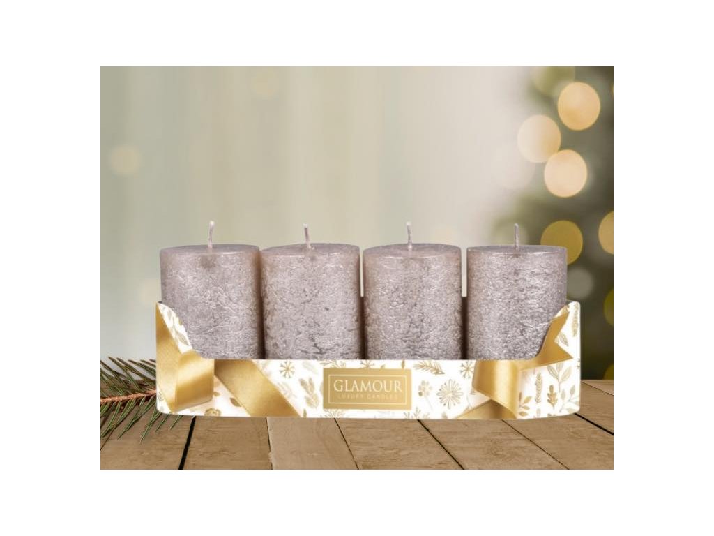 Svíčky adventní rustikální - růžovozlaté - metalické 4ks,5x8cm