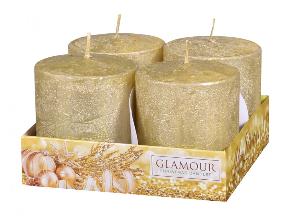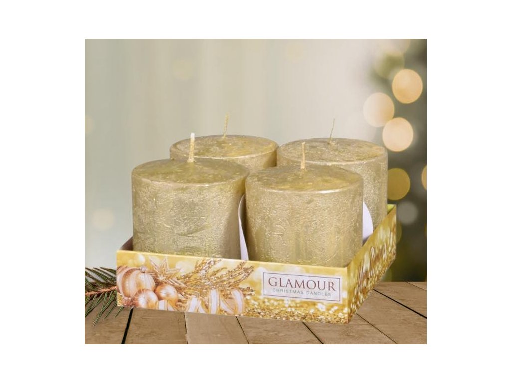 Svíčky adventní rustikální - zlaté - metalické 4ks,6x7cm