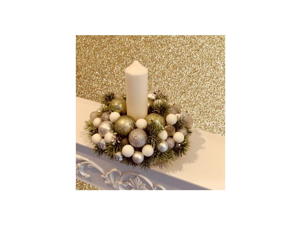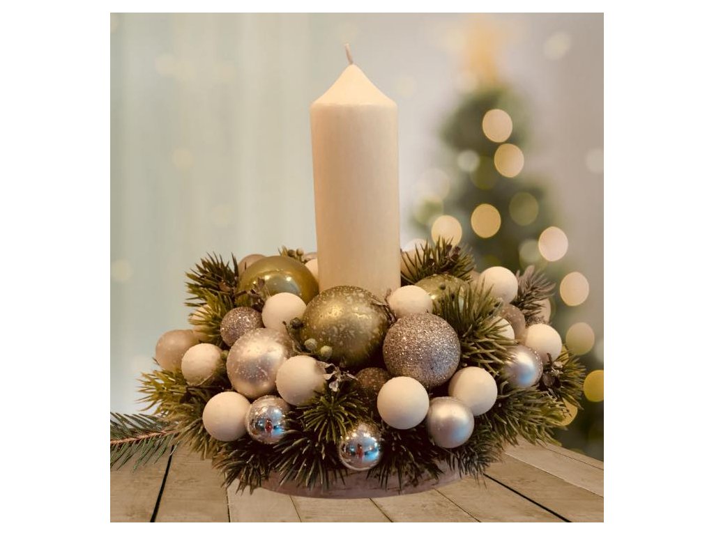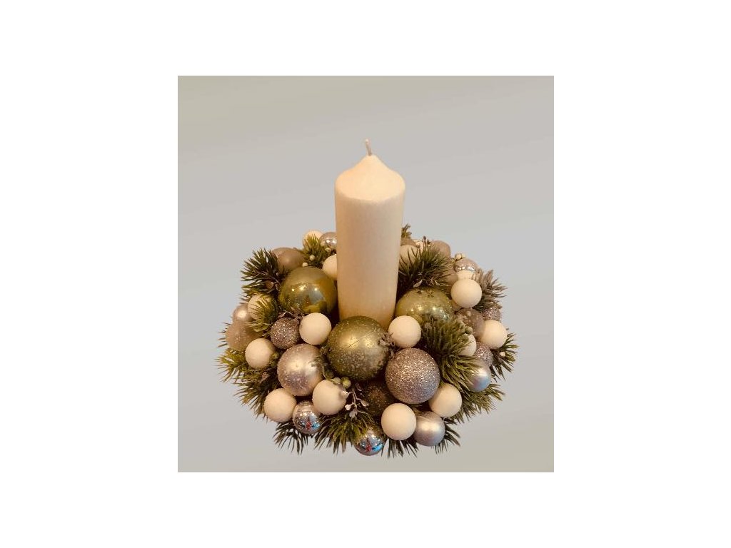 Vánoční dekorace - svíčka bílá - kulaté ozdoby,pr.20cm